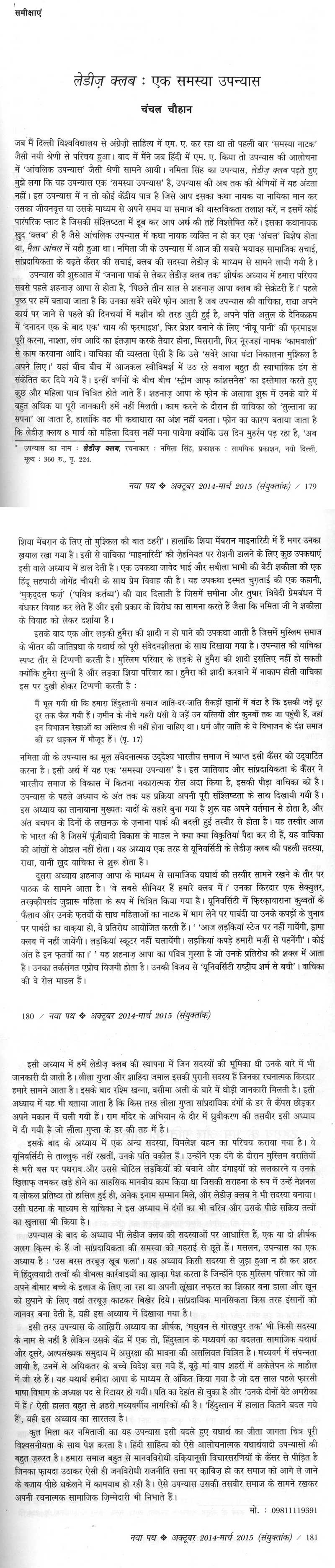 समीक्षाये : लेडीज क्लब : एक समस्या उपन्यास